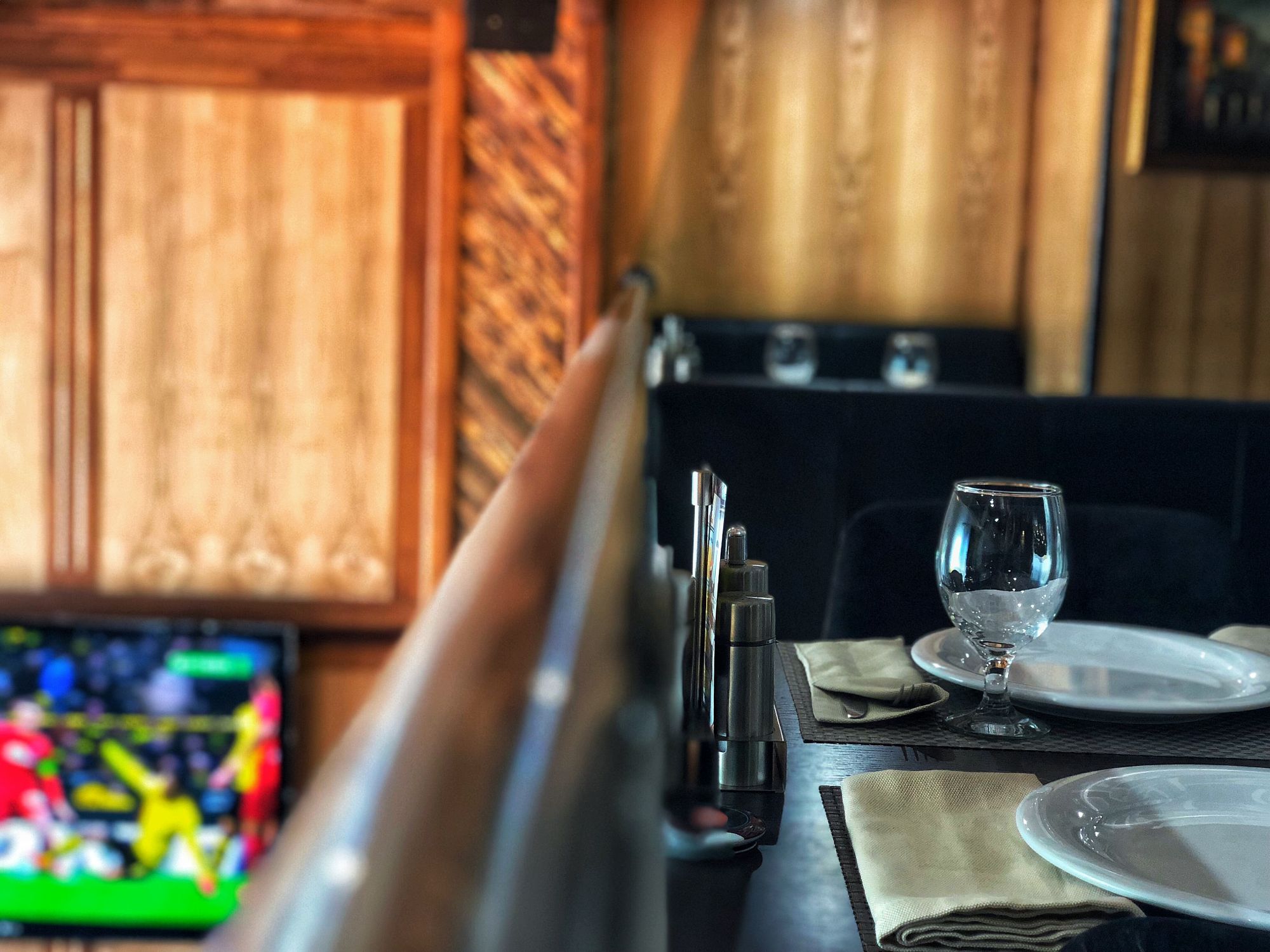 Спорт-бар в ЖК "триумфальная арка" выполнен в смешанном стиле : классической и хай-тек. Строгость и практичность — новый спорт-бар "golpas". В отделке использованы изготовленные из металлических хромированных труб детали, мебель из благородного дерева, центральное место в интерьере занимает кофе машина эксклюзивного изготовления из титана